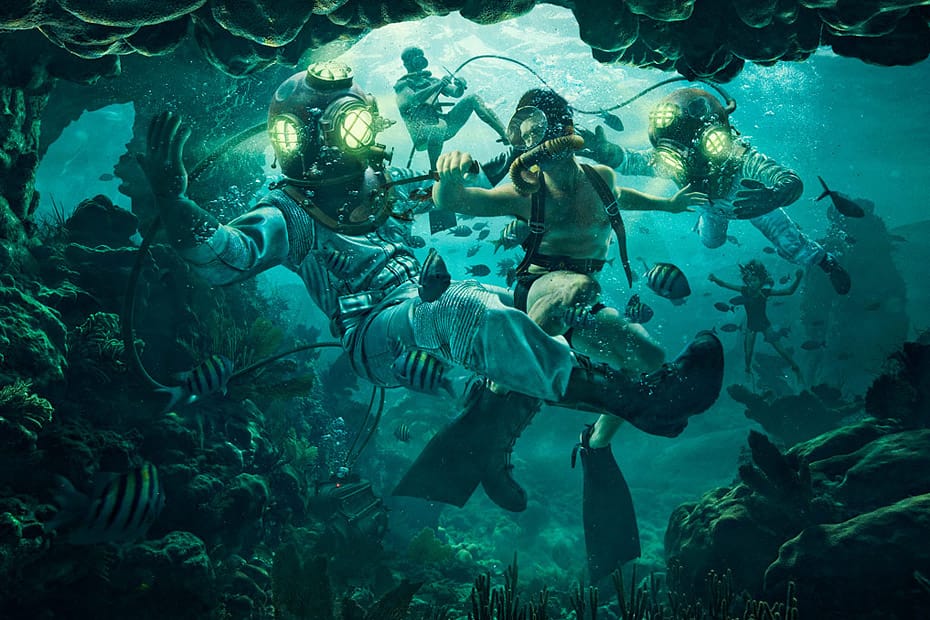 Qui a dit que la photographie était un art immobile ? Ce n’est pas le cas, en tout cas, des 11 clichés de Dave Hill. Une superbe vidéo découpe chacune des photos, les triture, malaxe, malmène… pour en sortir la moelle. Incroyable phénomène, qui fera des émules à n’en pas douter, qui donne vie à la photo au point d’en voir surgir une narration, de créer instantanément un scénario dans son esprit. Et pour les plus expérimentés, un découpage plan par plan des plus passionnants. Comme si on vous invitait à regarder la pièce de théâtre dans en vous baladant dans les coulisses. Dans Adventure Series les images se prêtent particulièrement bien à ce processus. Clichés exotiques, de plongée, de désert, de jungle. Du Jules Verne dans le texte. Une aventure visuelle sans Calypso et sans avoir à se présenter à la campagne présidentielle des Verts.