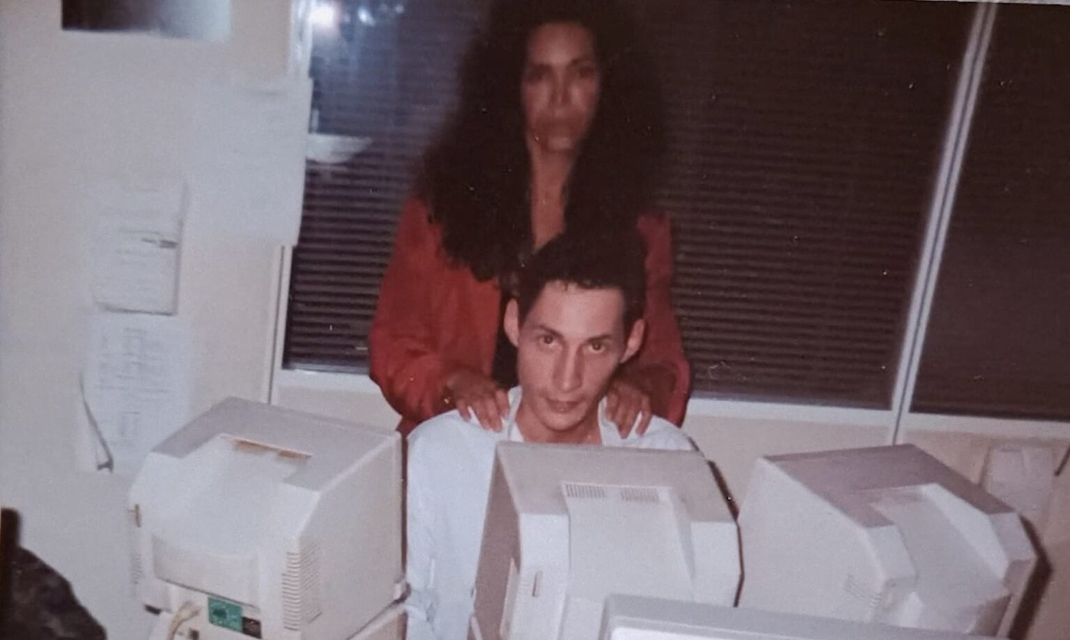 Cette scène se serait déroulée dans les locaux de Fermic, la société de Niel et Develter située 2, passage de Crimée, dans le 19ème arrondissement parisien. «C’était une petite pièce un peu crado, chaque hôtesse gérait deux minitel», se souvient sa collègue Izza. Derrière des vitrages équipés de stores vénitiens, qu’on aperçoit sur des photos que s’est procuré Off investigation, Niel occupait un petit bureau depuis lequel il surveillait ses hôtesses minitel.