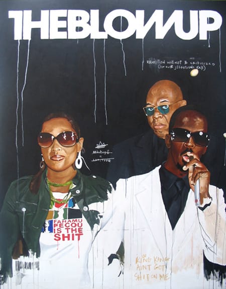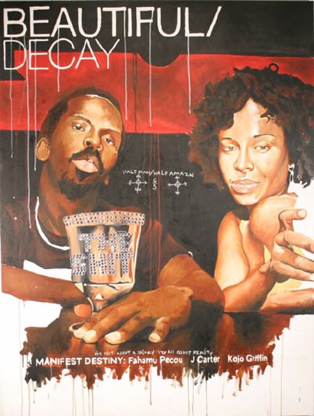 Déboussolé, ils deviennent des stéréotypes, pauvres de sens. « N’accordant plus aucune valeur à leur propre existence, leur désespoir se manifeste au travers de comportements autodestructeurs cachés derrière une façade de bravoure. » Un questionnement de la limite entre autoprotection et autodestruction. Fahamu Pecou parvient à marier culture pop et street. Un trou de force de génie, à mi-chemin entre Basquiat et Warhol.