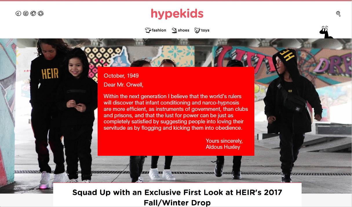 Hypekids est un laboratoire de contrôle, une étape audacieuse d’Hypebeast vers la domination des esprit les plus innocents.