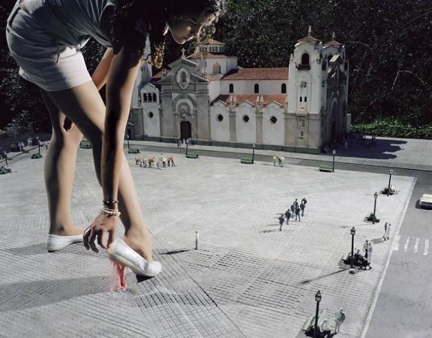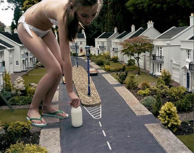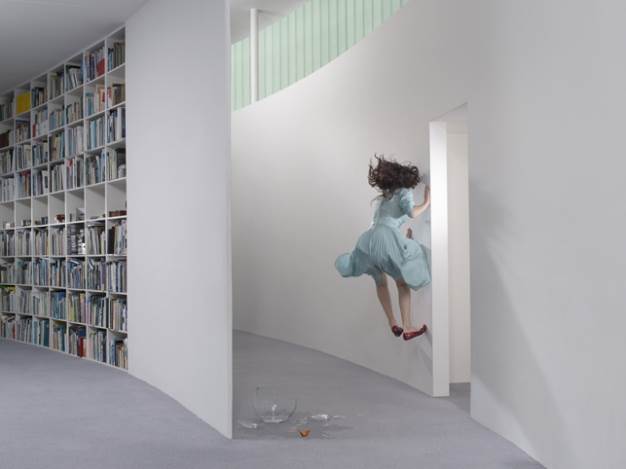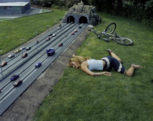Julia Fullerton-Batten sait prendre une photo. Le cadrage, la lumière, les couleurs, tout est impeccable. Mais ce qui fait de cette allemande de 31 ans une vraie artiste, c’est la mise en scène, ou comment faire parler les photos. Ses clichés racontent plus qu’une histoire, ils développent des concepts. L’artiste qui a grandit aux Etats-Unis puis en Allemagne, avant de s’installer en Angleterre, s’est faite connaitre grâce, notamment, à deux séries de photos. In Between où les modèles lévitent au milieu de scènes quotidiennes, comme détachés de la réalité. Un cri de désespoir par la légèreté. Et Teenage Stories, qui met en scène des adolescentes géantes dans un monde lilliputien. Les personnages, encore enfantins, ont la taille de leur rêve, au milieu d’un monde d’adulte qui bien souvent les fait chuter malgré son insignifiance.
