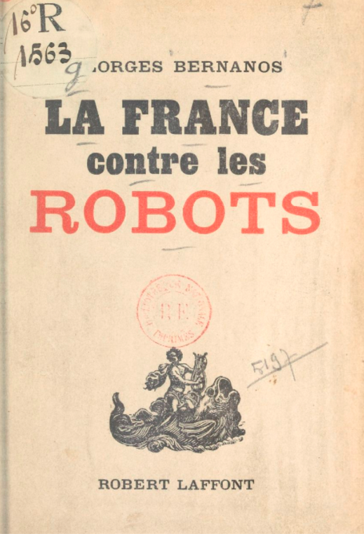 On se moque des gens simples qui parlent volontiers des nations comme de personnes, mais ce sont les gens simples qui ont raison. Les gens simples simplifient, quoi de mieux ? Ils ne simplifient pas évidemment de la même manière que le génie, mais qu’importe ? Oh ! sans doute, la vie d’un peuple n’est pas moins pleine de contradictions que celle du premier venu, et les curieux gaspillent beaucoup de temps et d’ingéniosité à en faire le compte, ou même à en découvrir d’imaginaires. Les curieux sont toujours dupes de leur curiosité. Ils expliquent tout et ne comprennent rien. Ces beaux esprits n’aiment pas s’entendre dire que la France a été déçue, ils trouvent l’image sommaire, grossière, ils voudraient plus de nuances. Tant pis ! Supposez qu’on eût posé à un homme cultivé du XIIIe, du XVe ou du XVIIe la question suivante : « Quelle idée vous faites-vous de la société future ? » il aurait pensé aussitôt à une civilisation pacifique, à la fois très près de la nature et prodigieusement raffinée. C’est du moins à une civilisation de ce type que la France s’est préparée tout au long de sa longue histoire. Des millions d’esprits dans le monde s’y préparaient avec elle. On comprend très bien maintenant leur erreur. L’invasion de la Machinerie a pris cette société de surprise, elle s’est comme effondrée brusquement sous son poids, d’une manière surprenante. C’est qu’elle n’avait jamais prévu l’invasion de la Machine ; l’invasion de la machine était pour elle un phénomène entièrement nouveau. Le monde n’avait guère connu jusqu’alors que des instruments, des outils, plus ou moins perfectionnés sans doute, mais qui étaient comme le prolongement des membres. La première vraie machine, le premier robot, fut cette machine à tisser le coton qui commença de fonctionner en Angleterre aux environs de 1760. Les ouvriers anglais la démolirent, et quelques années plus tard les tisserands de Lyon firent subir le même sort à d’autres semblables machines. Lorsque nous étions jeunes, nos pions s’efforçaient de nous faire rire de ces naïfs ennemis du progrès. Je ne suis pas loin de croire, pour ma part, qu’ils obéissaient à l’instinct divinatoire des femmes et des enfants. Oh ! sans doute, je sais que plus d’un lecteur accueillera en souriant un tel aveu. Que voulez-vous ? C’est très embêtant de réfléchir sur certains problèmes qu’on a pris l’habitude de croire résolus. On trouverait préférable de me classer tout de suite parmi les maniaques qui protestaient jadis, au nom du pittoresque, contre la disparition du fameux ruisseau boueux de la rue du Bac… Or, je ne suis nullement « passéiste », je déteste toutes les espèces de bigoteries superstitieuses qui trahissent l’Esprit pour la Lettre. Il est vrai que j’aime profondément le passé, mais parce qu’il me permet de mieux comprendre le présent — de mieux le comprendre, c’est-à-dire de mieux l’aimer, de l’aimer plus utilement, de l’aimer en dépit de ses contradictions et de ses bêtises qui, vues à travers l’Histoire, ont presque toujours une signification émouvante, qui désarment la colère ou le mépris, nous animent d’une compassion fraternelle. Bref, j’aime le passé précisément pour ne pas être un « passéiste ». Je défie qu’on trouve dans mes livres aucune de ces écœurantes mièvreries sentimentales dont sont prodigues les dévots du « Bon Vieux Temps ». Cette expression de Bon Vieux Temps est d’ailleurs une expression anglaise, elle répond parfaitement à une certaine niaiserie de ces insulaires qui s’attendrissent sur n’importe quelle relique, comme une poule couve indifféremment un œuf de poule, de dinde, de cane ou de casoar, à seule fin d’apaiser une certaine démangeaison qu’elle ressent dans le fondement. Je n’ai jamais pensé que la question de la Machinerie fût un simple épisode de la querelle des Anciens et des Modernes. Entre le Français du XVIIe et un Athénien de l’époque de Périclès, ou un Romain du temps d’Auguste, il y a mille traits communs, au lieu que la Machinerie nous prépare un type d’homme… Mais à quoi bon vous dire quel type d’homme elle prépare. Imbéciles ! n’êtes-vous pas les fils ou les petit-fils d’autres imbéciles qui, au temps de ma jeunesse, face à ce colossal Bazar que fut la prétendue Exposition Universelle de 1900, s’attendrissaient sur la noble émulation des concurrences commerciales, sur les luttes pacifiques de l’Industrie ?… À quoi bon, puisque l’expérience de 1914 ne vous a pas suffi ? Celle de 1940 ne vous servira d’ailleurs pas davantage. Oh ! ce n’est pas pour vous, non ce n’est pas pour vous que je parle ! Trente, soixante, cent millions de morts ne vous détourneraient pas de votre idée fixe : « Aller plus vite, par n’importe quel moyen. » Aller vite ? Mais aller où ? Comme cela vous importe peu, imbéciles ! Dans le moment même où vous lisez ces deux mots : Aller vite, j’ai beau vous traiter d’imbéciles, vous ne me suivez plus. Déjà votre regard vacille, prend l’expression vague et têtue de l’enfant vicieux pressé de retourner à sa rêverie solitaire… « Le café au lait à Paris, l’apéritif à Chandernagor et le dîner à San Francisco », vous vous rendez compte !… Oh ! dans la prochaine inévitable guerre, les tanks lance-flammes pourront cracher leur jet à deux mille mètres au lieu de cinquante, le visage de vos fils bouillir instantanément et leurs yeux sauter hors de l’orbite, chiens que vous êtes ! La paix venue vous recommencerez à vous féliciter du progrès mécanique. « Paris-Marseille en un quart d’heure, c’est formidable ! » Car vos fils et vos filles peuvent crever : le grand problème à résoudre sera toujours de transporter vos viandes à la vitesse de l’éclair. Que fuyez-vous donc ainsi, imbéciles ? Hélas ! c’est