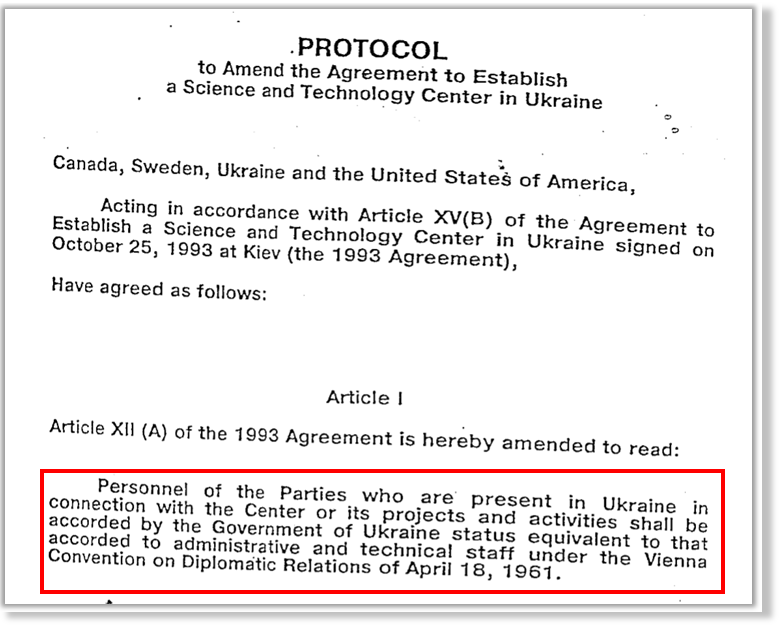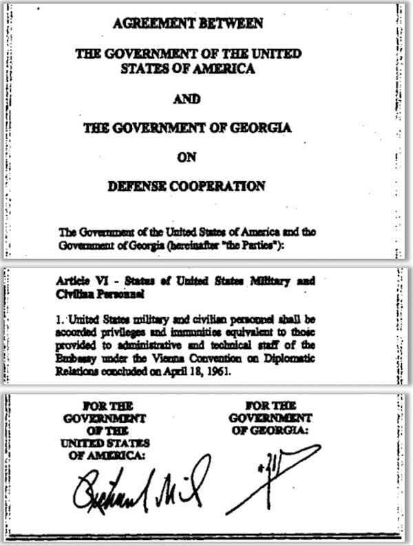 L’accord USA-Géorgie accorde un statut diplomatique au personnel militaire et civil américain (y compris les véhicules diplomatiques), travaillant sur le programme du Pentagone en Géorgie.