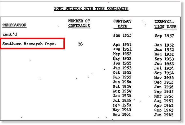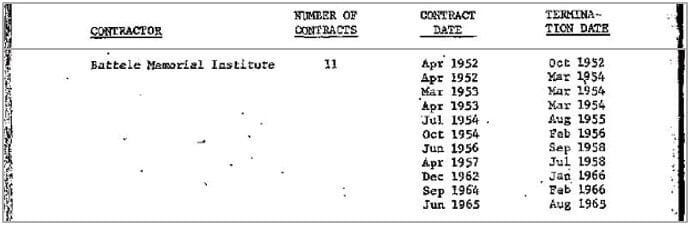 Battelle, en tant que sous-traitant de 59 millions de dollars au Lugar Center, possède une vaste expérience dans la recherche sur les bio-agents, car la société a déjà travaillé sur le programme américain d’armes biologiques dans le cadre de 11 contrats précédents avec l’armée américaine (1952-1966).
