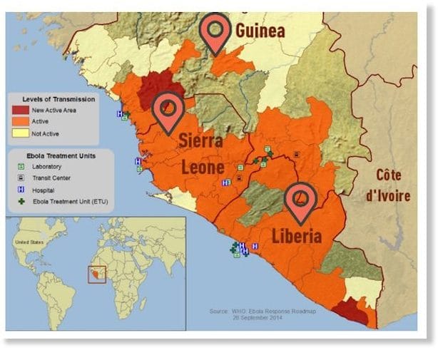 « Metabiota » a travaillé sur un projet du Pentagone à l’épicentre de la crise d’Ebola, où se trouvent trois laboratoires biologiques américains.