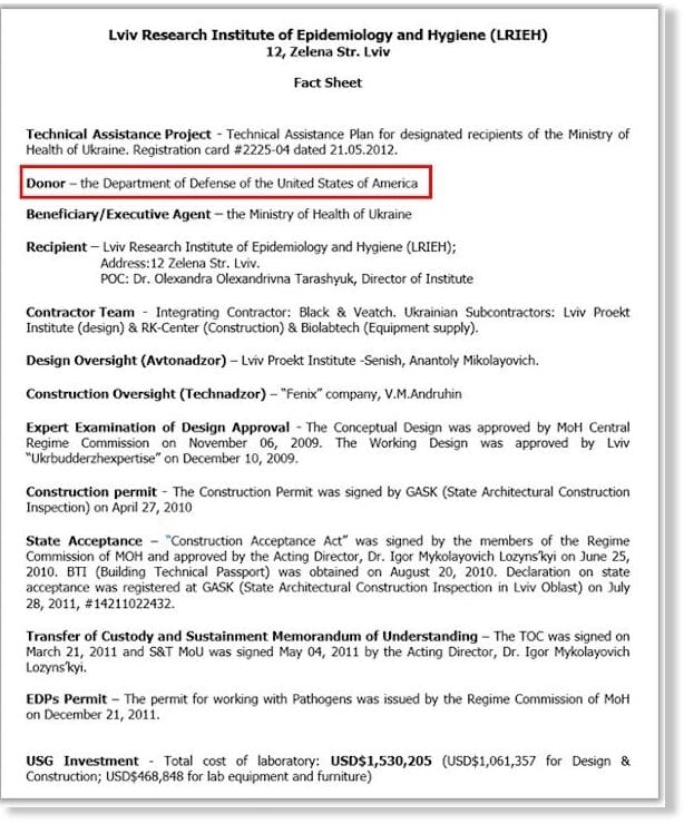 Selon CH2M Hill, la société américaine a obtenu des agents biologiques et a employé d’anciens scientifiques de la guerre biologique au Lugar Center. Ce sont des scientifiques qui travaillent pour une autre société américaine impliquée dans le programme militaire en Géorgie — Battelle Memorial Institute.
