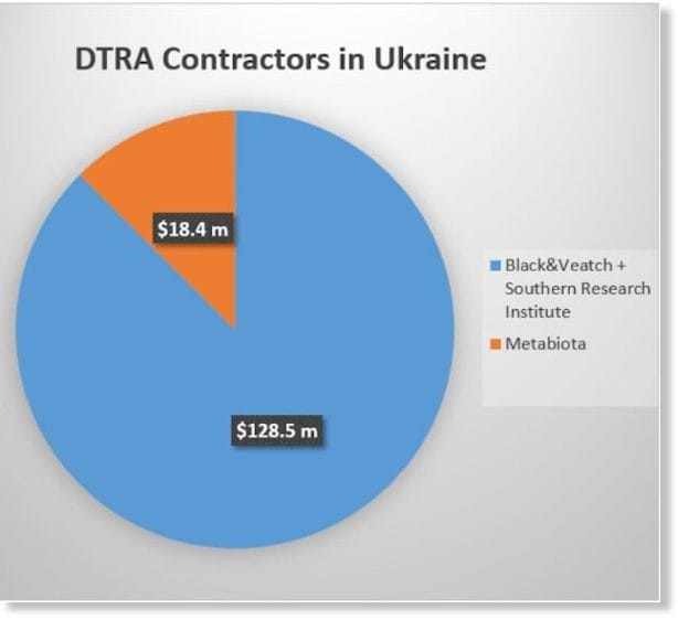 La société américaine « Metabiota Inc. » a obtenu des contrats fédéraux à hauteur de 18,4 millions de dollars dans le cadre du programme DTRA du Pentagone en Géorgie et en Ukraine pour des services de consultation scientifique et technique. Les services de « Metabiota » comprennent la recherche mondiale sur les menaces biologiques sur le terrain, la découverte de pathogènes, l’intervention en cas d’éclosion et les essais cliniques.