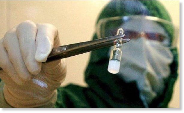 Des documents prouvent que l’armée américaine produit, possède et teste des aérosols de la toxine la plus mortelle au monde — la neurotoxine botulique. En 2014, le Département de l’Armée de terre a acheté 100 mg de toxine botulique de Metabiologics pour des tests à « Dugway Proving Ground ».
