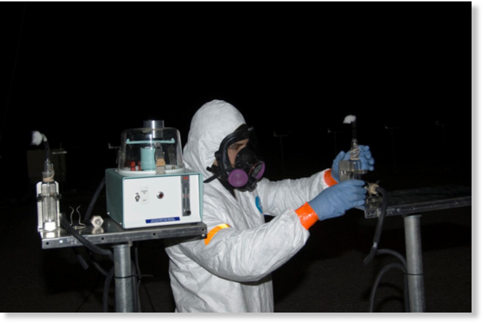 Une fois les agents biologiques produits, les scientifiques les mettent à l’épreuve dans des chambres de confinement des aérosols.