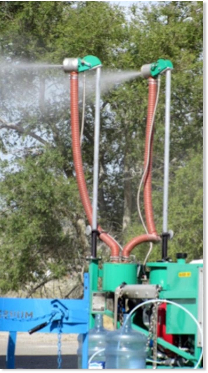 Le rapport de l’armée américaine énumère de nombreuses techniques de dissémination, y compris par des pulvérisateurs aérosols biologiques. De tels pulvérisateurs appelés disséminateurs Micronair ont déjà été mis au point par l’armée américaine et testés à Dugway Proving Ground. Selon les documents, ils peuvent être montés sur le véhicule, ou portés comme un sac à dos, avec un système de pompe qui peut être monté sur l’unité pour augmenter la précision du déclenchement. Les pulvérisateurs Micronair peuvent libérer de 50 à 500 ml de simulant bio-liquide par minute à partir de réservoirs de 12 litres.