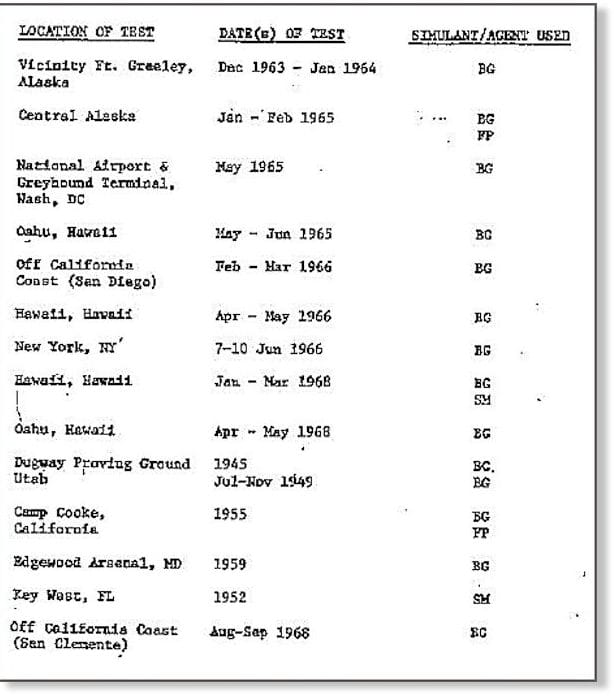 Source : US Army Activities in the US, Biological Warfare Programs, vol. II, 1977, p. 125-126