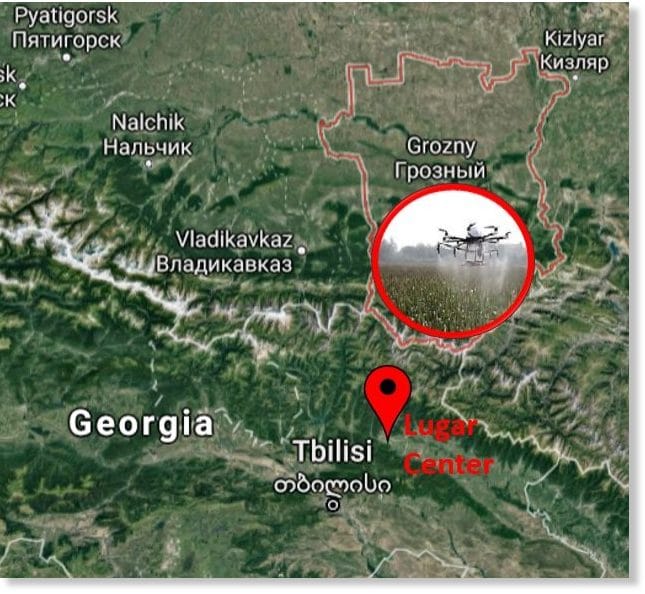 L’Agence de réduction des menaces de la Défense (DTRA), qui gère le programme militaire américain au Lugar Center en Géorgie, aurait déjà effectué des essais sur le terrain avec une substance inconnue en Tchétchénie, en Russie. Au printemps 2017, des citoyens locaux ont fait état d’un drone disséminant de la poudre blanche près de la frontière russe avec la Géorgie. Ni la police des frontières géorgienne, ni le personnel américain opérant à la frontière entre la Géorgie et la Russie n’ont commenté ces informations .