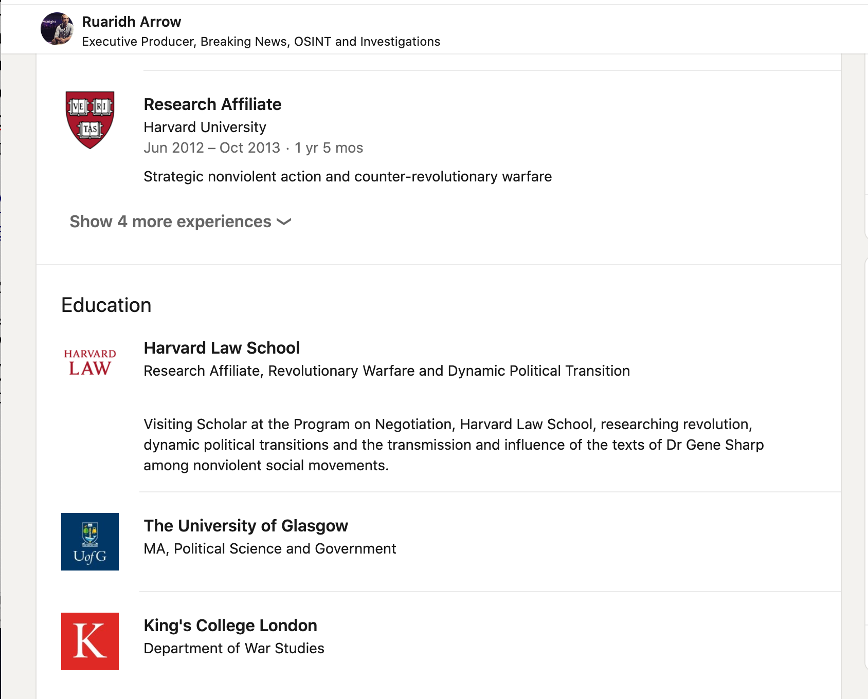 Le King’s College de Londres commercialise le département d’études sur la guerre auprès des diplômés et des étudiants de premier cycle comme un tremplin vers une carrière dans le journalisme. Dans sa section « perspectives de carrière » pour son cours de maîtrise en études de guerre, il indique aux étudiants intéressés que « les diplômés vont travailler pour des ONG, le FCO, le ministère de la Défense, le ministère de l’Intérieur, l’OTAN, l’ONU ou poursuivre des carrières dans le journalisme, la finance , le milieu universitaire, les services diplomatiques, les forces armées et plus encore.