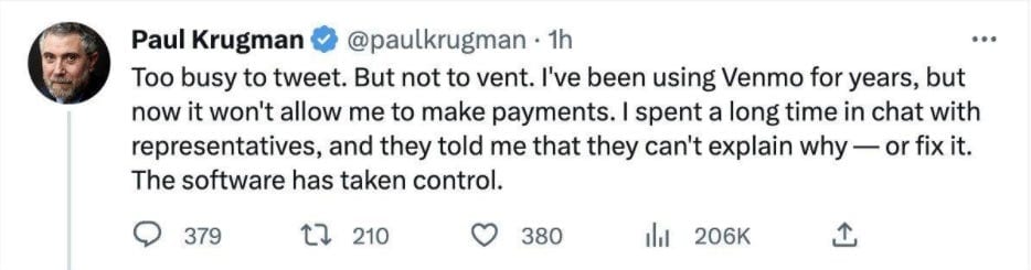 Les mots de passe sont un cauchemar à la fois à créer et à demander, si vous oubliez le vôtre – chaque interface cherche désormais votre téléphone portable comme s’il s’agissait de la dernière dose de fentanyl – une norme si rapidement et si peu démocratiquement adoptée que l’on se demande quelles autres “nouvelles normes” nous attendent.